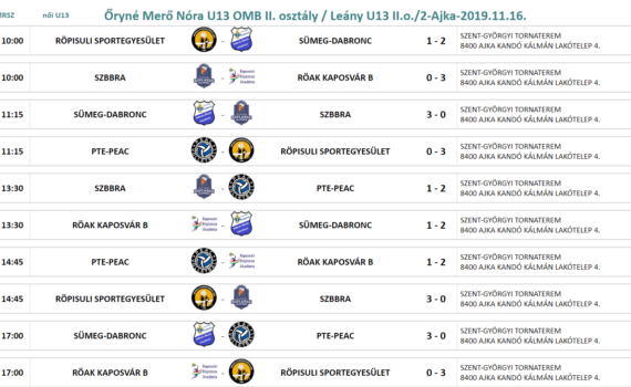 December 7-én Sümegen rendeztek leány U13 OMB II. o. tornát szombaton. Öt csapat vett részt a Várkupán, csapatunk a harmadik helyen végzett. Eredmények: SÜDA – Ajka Röpisuli 3:0 SÜDA – Tatabánya RSE 1:2 SÜDA – Szombathelyi SI B 1:2 SÜDA – Szombathelyi SI A 2:1 A csapat tagjai: Kenyeres Panna, Bécsi Gabriella, Resperger Dóra Leila,…